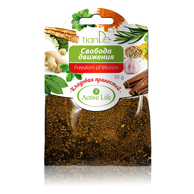 На 100% природный активный состав кладовой пряностей <<Свобода движений>> от TianDe поможет тебе как можно дольше сохранять гибкость и подвижность. Пряности содержат множество полезных трав и натуральную серу, которая обладает противовоспалительным действием и уменьшает неприятные ощущения (в том числе после травм). Растения, в свою очередь, улучшают минеральный обмен веществ в организме.