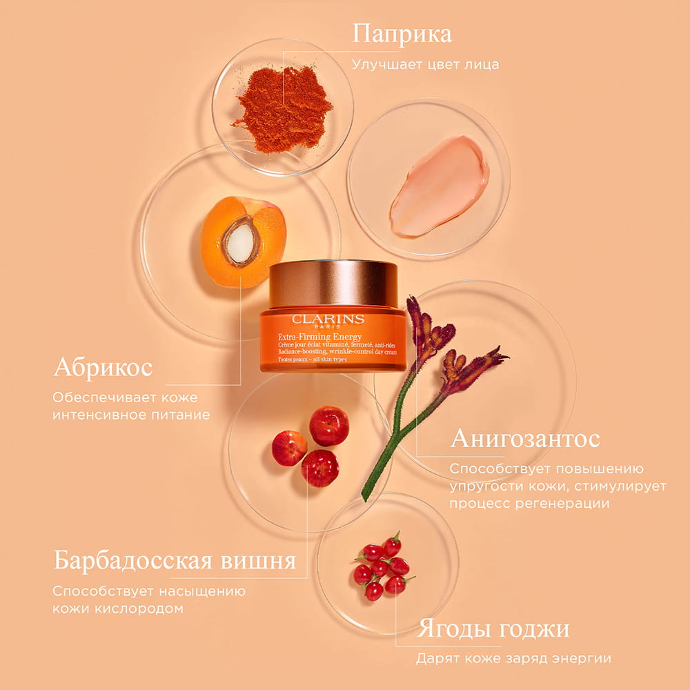 Средство ухода 2 в 1, оказывающее одновременно антивозрастное и тонизирующее действие. Его формула, разработанная специально для активных женщин 40 лет, дарит коже все, в чем она нуждается, чтобы выглядеть великолепно: энергию, упругость и сияние. Укрепляющие растительные экстракты анигозантоса и митракарпа способствуют сокращению морщин и заметному повышению упругости кожи. Инновационный растительный комплекс [GLOW PLUS COMPLEX] на основе экстракта косточек барбадосской вишни, органического экстракта ягод годжи, органического масла абрикоса и экстракта паприки моментально наполняет кожу энергией и улучшает цвет лица. А перламутровые светоотражающие частицы придают коже здоровое сияние. Кожа становится более гладкой, упругой, сияющей и будто наполненной изнутри. Лицо выглядит моложе.