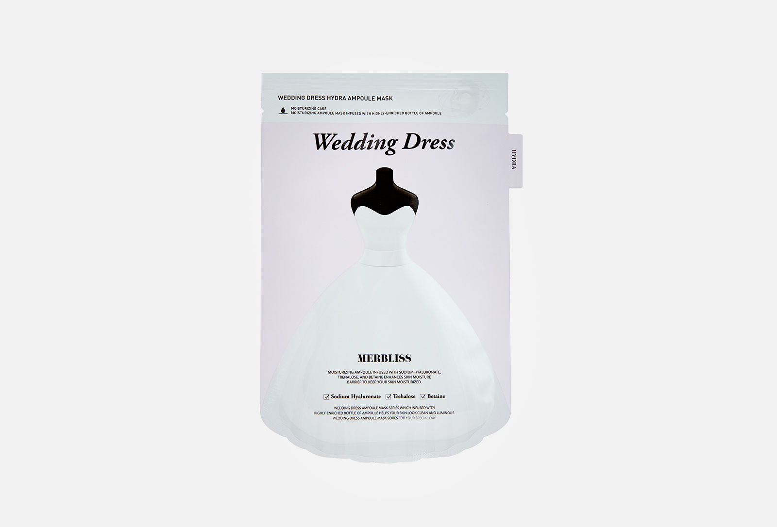 Wedding Dress Hydra Ampoule Mask - это взрыв питательных веществ для укрепления естественного гидролипидного барьера кожи. Маска объединяет три активных увлажняющих компонента. Гиалуронат натрия, получаемый из гиалуроновой кислоты, проникает в глубокие слои кожи, увлажняет её и делает более эластичной. Бетаин удерживает влагу в клетках, придаёт коже гладкость и мягкость. Трегалоза обеспечивает защиту от негативных внешних факторов и увлажнение. Результат - сияющая и чистая кожа в самый счастливый и важный день!
